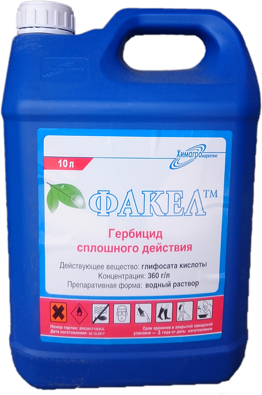 Факел, ВР (360 г/л) - системный гербицид сплошного действия для уничтожения не желательной растительности.
