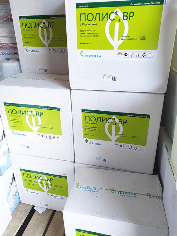 Десикант Полис – высокоэффективен для подсушивания подсолнечника в любых погодных условиях.