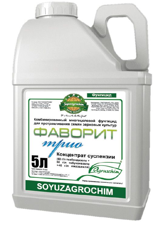 Фаворит Трио, КС (тебуконазол 60г/л + тиабендазол 60 г/л + 40 г/л имазалил) - мощный многоцелевой фунгицидный протравитель.